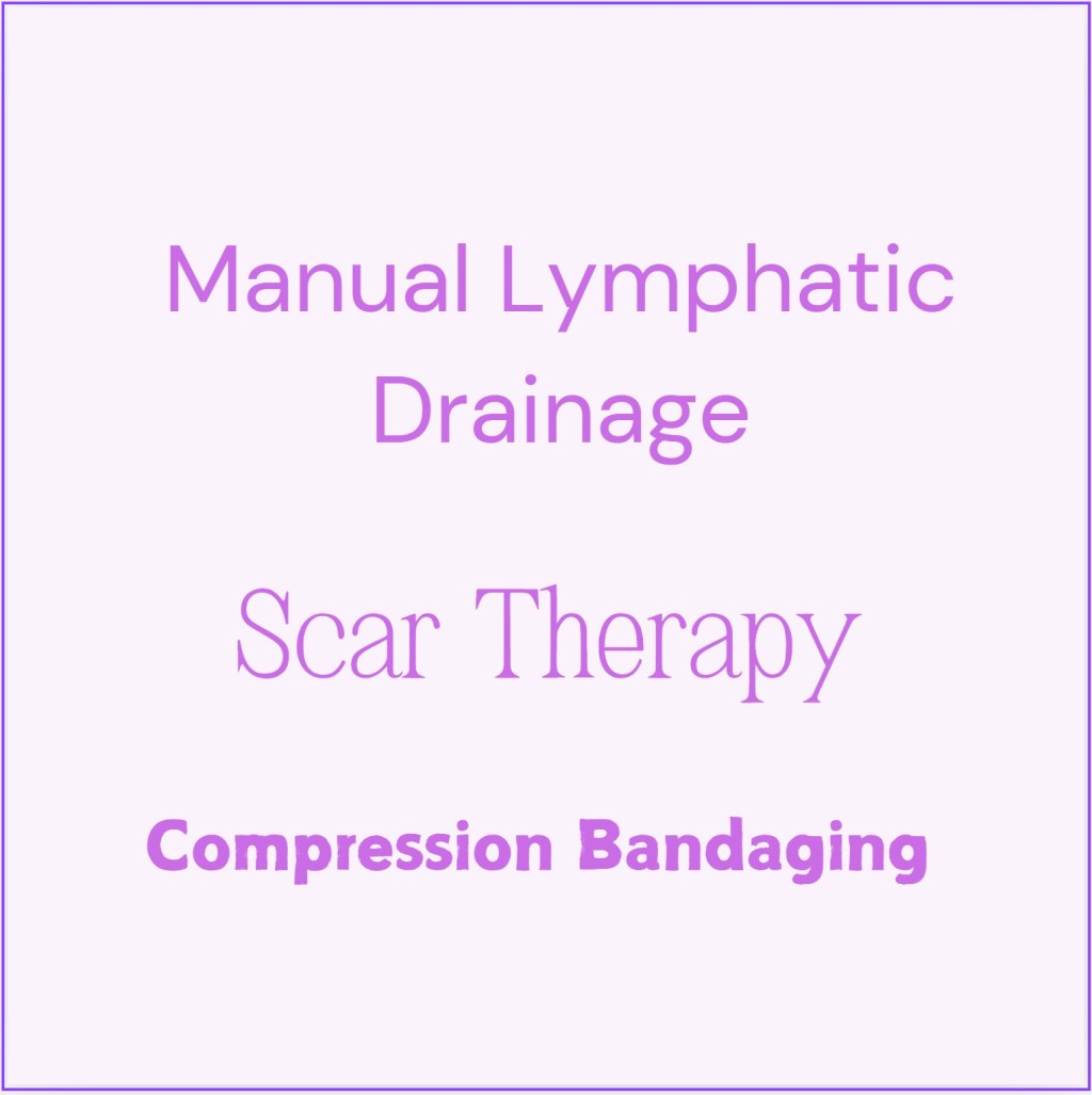 I offer Manual Lymphatic Drainage, Scar therapy & compression bandaging for all types of lymphoedema & lipoedema. This can be part of your post surgical procedure recovery or part of your cancer journey.